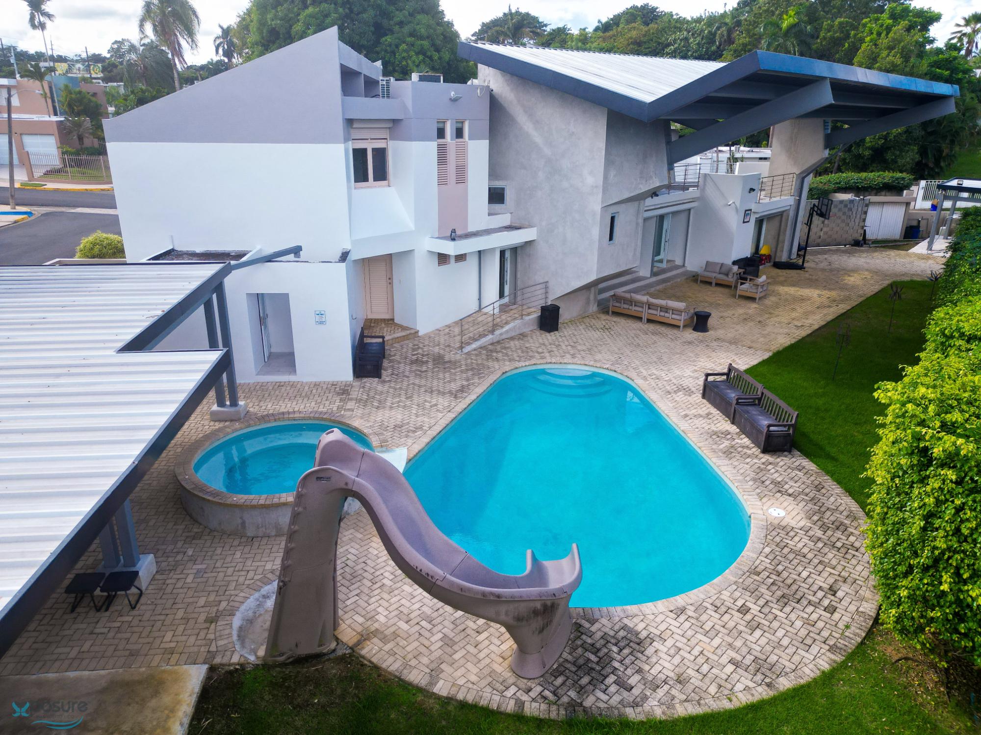 "Exquisita Residencia de Lujo en Urbanización Santa María, San Juan" Ubicada en una calle sin salida dentro de una de las comunidades más exclusivas de San Juan, esta impresionante residencia de 5,000 pies cuadrados, en un amplio terreno de 1,700 metros cuadrados, combina elegancia, comodidad y privacidad. Con 6 habitaciones y 5.5 baños, esta casa de dos niveles cuenta con un diseño arquitectónico moderno y acabados de lujo, como pisos en mármol y una cocina gourmet con topes en granito. Un ascensor interno brinda comodidad y accesibilidad a todos los niveles de la propiedad. Entre sus áreas de entretenimiento, destacan un cine privado, un área de BBQ con barra perfecta para reuniones sociales, y una piscina climatizada, ideal para disfrutar todo el año. Además, el sistema de sonido integrado para interiores y exteriores eleva la experiencia de vida. Esta propiedad representa el equilibrio perfecto entre sofisticación y funcionalidad, ideal para quienes buscan un estilo de vida exclusivo en San Juan. ¡Un verdadero paraíso en el corazón de Puerto Rico!..