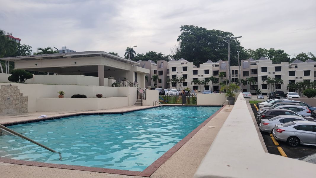 Viva en la ciudad rodeado de vegetación! Apartamento segundo piso (solo bajas 7 escalones) de 3 habitaciones/2 baños y amplio balcón. El apartamento incluye enseres y 2 a/c de ventana. Cuenta con dos estacionamientos (back to back). El complejo tiene seguridad 24/7 y facilidades recreativas que incluyen piscina, cancha de baloncesto, parque para niños y gazebo.
