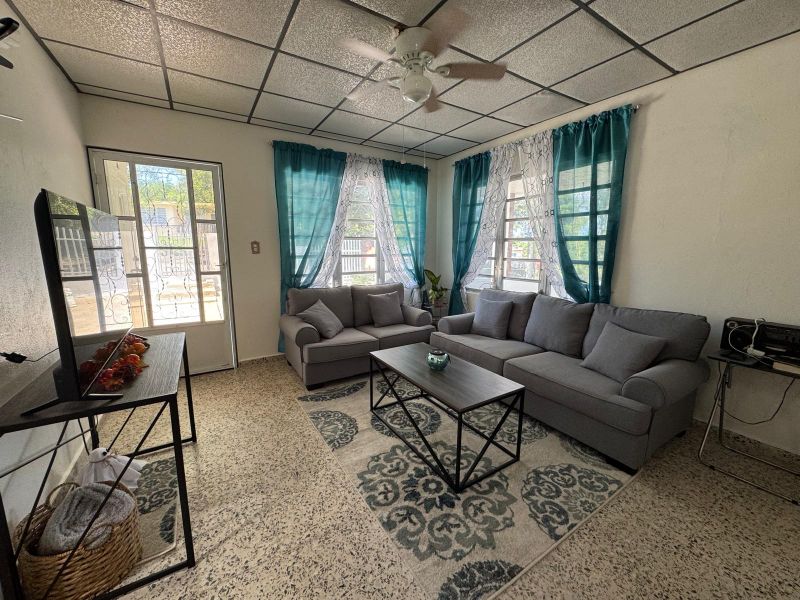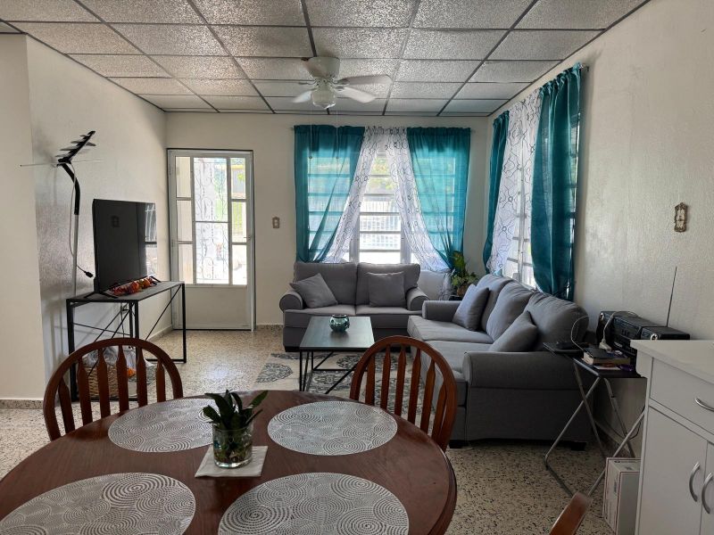Casa rural lista para mudarse en Lares, PR. Esta propiedad ofrece tranquilidad y contacto con la naturaleza en un entorno acogedor. Cuenta con 3 habitaciones, 2 baños y 1,036 pies cuadrados de construcción, distribuidos de manera funcional para una vida cómoda. El terreno es amplio, con 2,400 m², ideal para siembra, áreas verdes, ganado o mascotas.