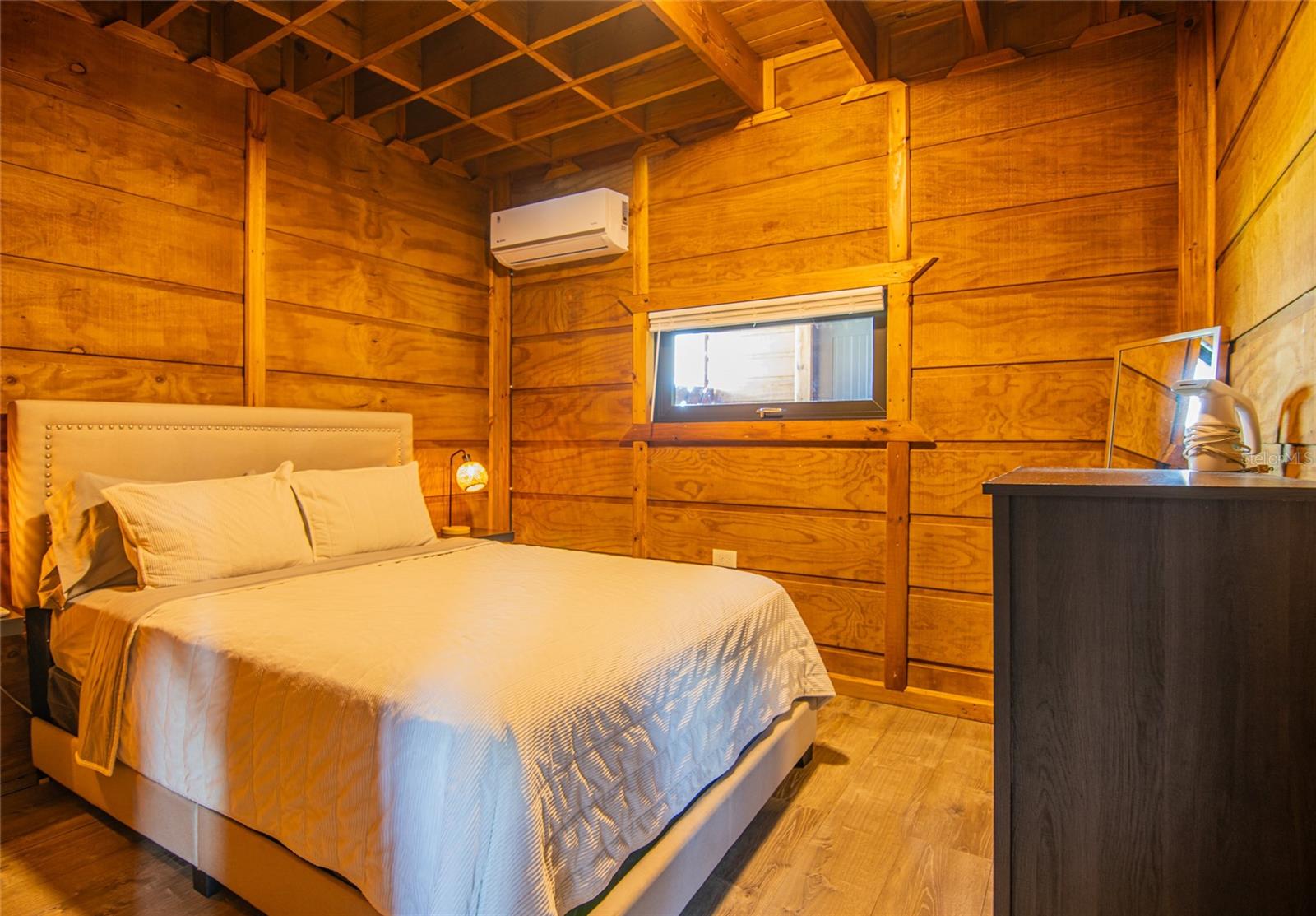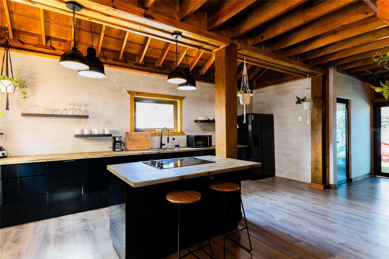 Contemporary cabin built less than 5 years ago with wood construction on a solid concrete base, located in Quebradillas in a high-demand area with quick access to beaches and neighboring Isabela. The property currently operates as a short-term rental (STR) with proven performance and excellent upkeep, yet it is also perfectly suited as a primary residence thanks to its spacious layout and distinctive design. The first level features an open-concept living area and kitchen centered around a large island. One bedroom is located on this floor.
