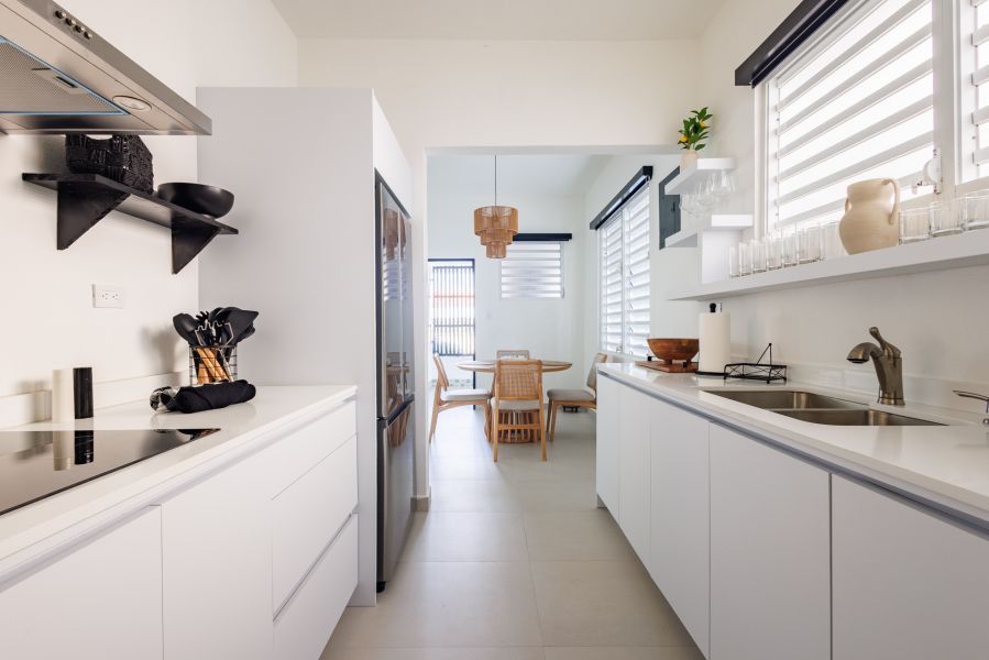 The updated bathroom features contemporary fixtures and stylish finishes. Enjoy the convenience of all utilities included in the rent, along with a full generator for uninterrupted power and a water cistern for reliable water supply.