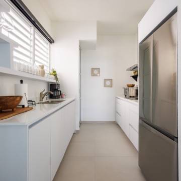 The space is tastefully furnished, offering all the essentials for a comfortable lifestyle. The well-appointed kitchen includes high-end appliances and ample counter space, making it perfect for meal preparation.