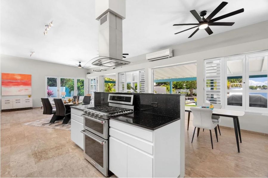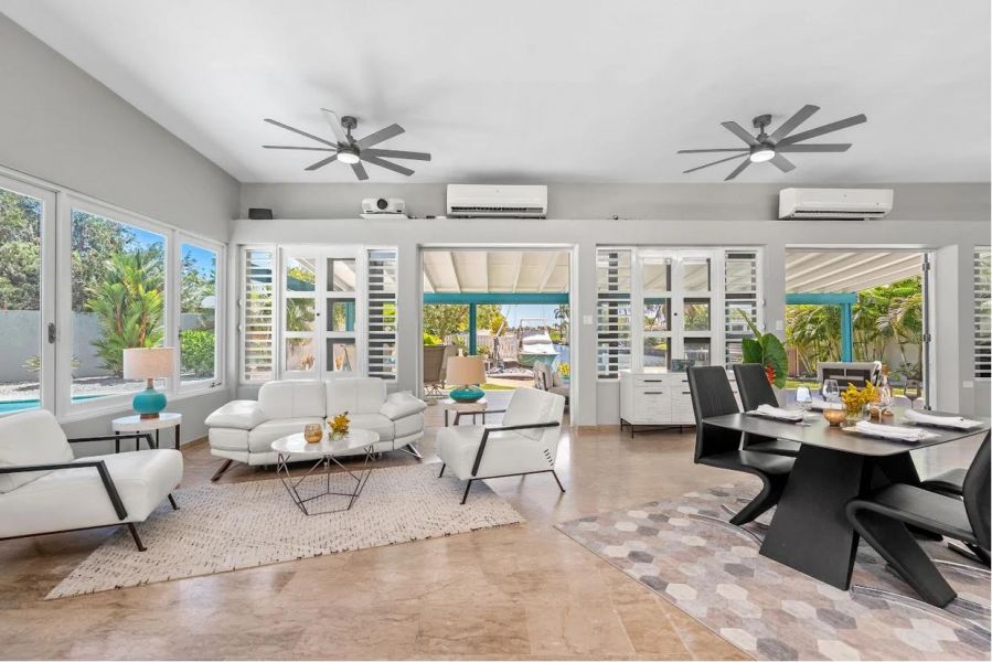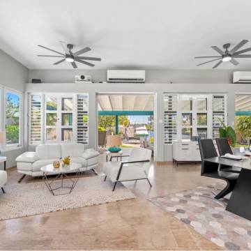 En esta elegante residencia de una sola planta, cada detalle ha sido pensado para ofrecer comodidad, amplitud y un estilo de vida frente al mar sin igual. Con 2,760 pies cuadrados, esta joya se complementa con un muelle privado capaz de recibir yates de hasta 50 pies, ideal para los amantes de la navegación.