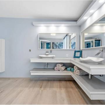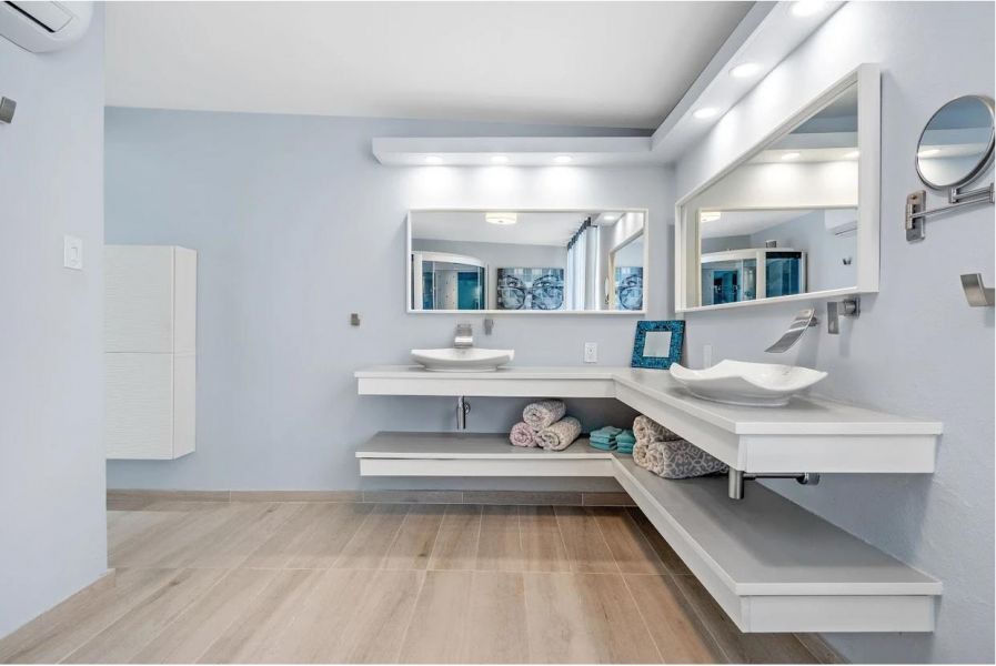 2 baños completos y 1 medio baño, diseñados con buen gusto