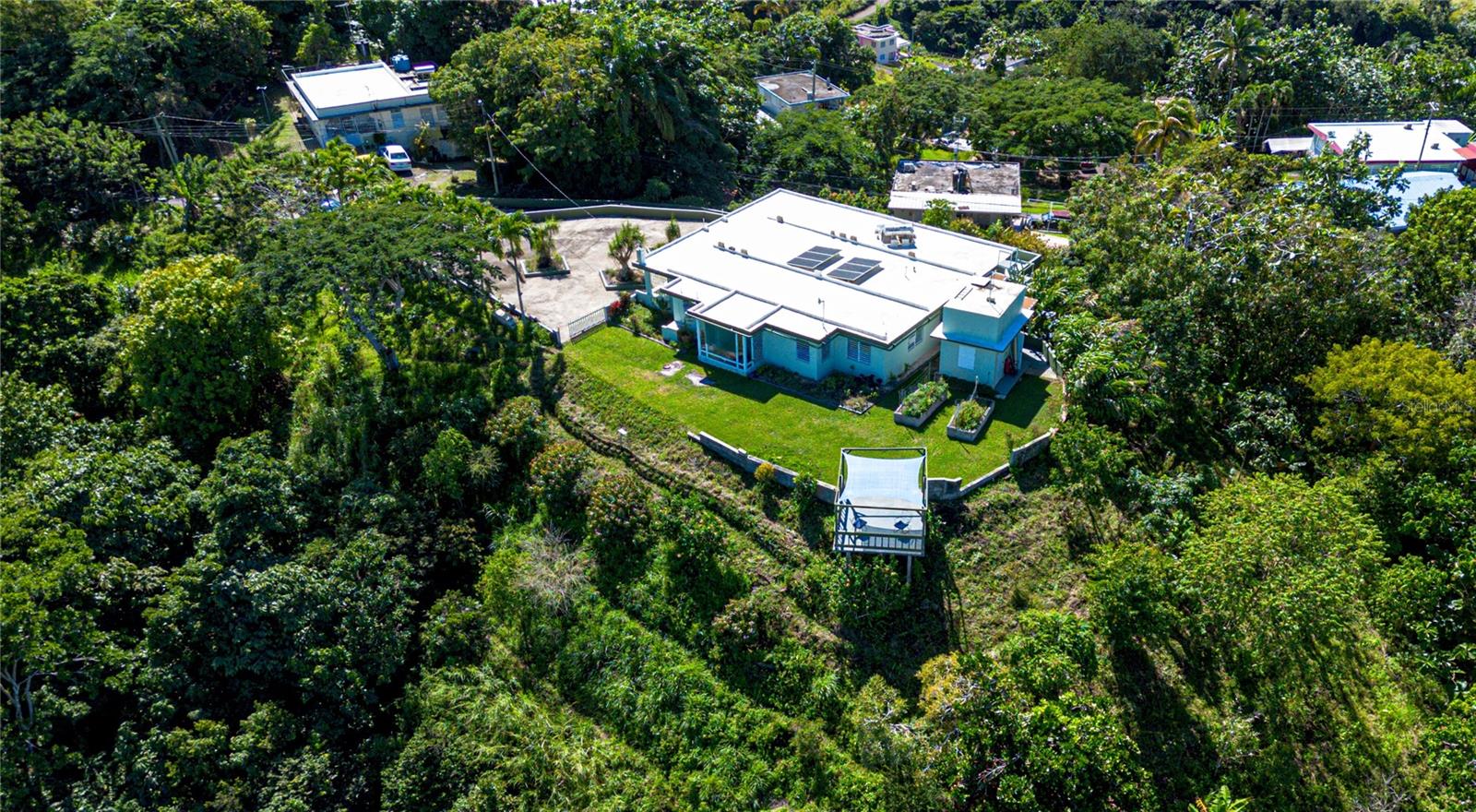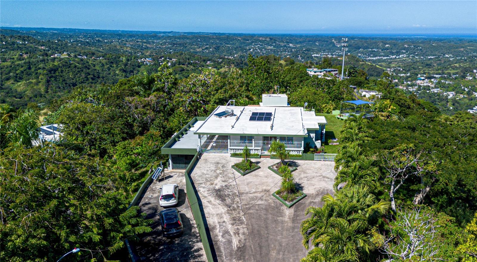 This exceptional two-story residence sits on over 10,190 square meters of land, offering sweeping views of the mountains, the ocean, San Juan, and neighboring towns. Designed for comfort and tranquility, the home features five bedrooms, 3.5 bathrooms, generous living spaces, multiple outdoor areas, a private lookout deck, and lush grounds filled with fruit trees, ornamental plants, and wildlife.