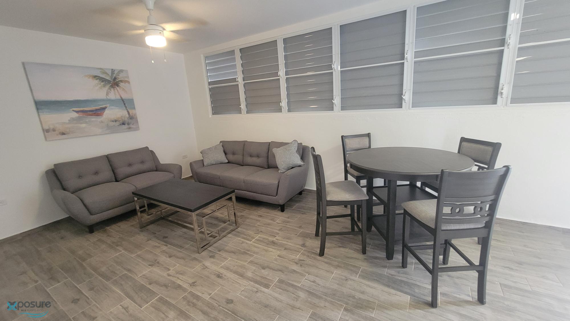 Apartamento #23 de 2/1, sala, comedor, cocina. Completamente amueblado y equipado. Incluye: Utilidades (agua/luz), Internet (wifi), A/C - Master; Cama King & Queen. Dos estacionamiento asignado y calentador de agua; listo para mudarse. Amenidades Disponibles: Control de Acceso, Área Recreativa, Piscina, Cancha de Baloncesto, Baños exteriores con ducha y área de Lavanderia. Covachas para almacenar (4x11) disponibles, requiere pago adicional, NO incluido en el alquiler. Nos Reservamos el Derecho de admisión. Área designada exclusivamente para estacionamiento de visita. Cercanía: 5 min PR#2, 5-7 min, Playa-Balneario Añasco, 8-10 min Rincón, Área comercial, turística y escuelas..