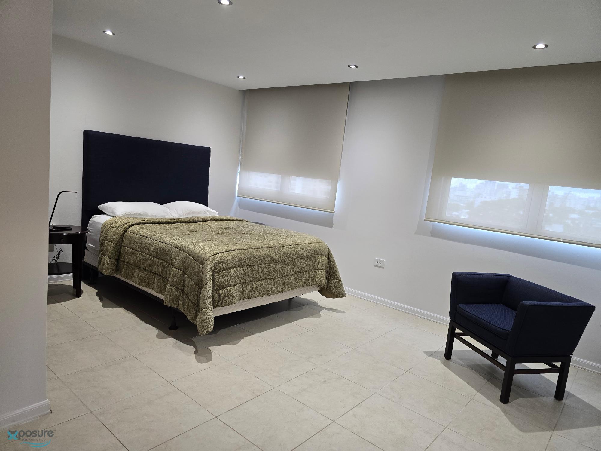 Elegante apartamento con una unidad por piso, ubicado en el octavo nivel del exclusivo condominio Taft 60 en Condado. Ofrece 2 habitaciones, 2 baños y 1,612 p/c de construcción con una distribución moderna y funcional. La cocina, con topes en granito, se integra a las áreas abiertas de sala y comedor. Incluye nevera, estufa, extractor, microondas, lavaplatos, vinera, televisor, sistema de sonido inteligente, 4 aires acondicionados, lavadora/secadora, juego de cuarto con mesas de noche y butaca de diseñador, cortinas, tormenteras, caja fuerte, calentador eléctrico y archivo. El edificio cuenta con piscina, generador que provee energía a áreas comunes y 110V dentro del apartamento, además de estacionamiento bajo techo. Goza de vistas parciales al mar y la ciudad, a pasos de la playa, restaurantes, comercios, colegios y hospitales. Coordenadas: 18.45208, -66.06093. Requisitos: Fianza, depósito, Lease Bond y verificación de crédito..