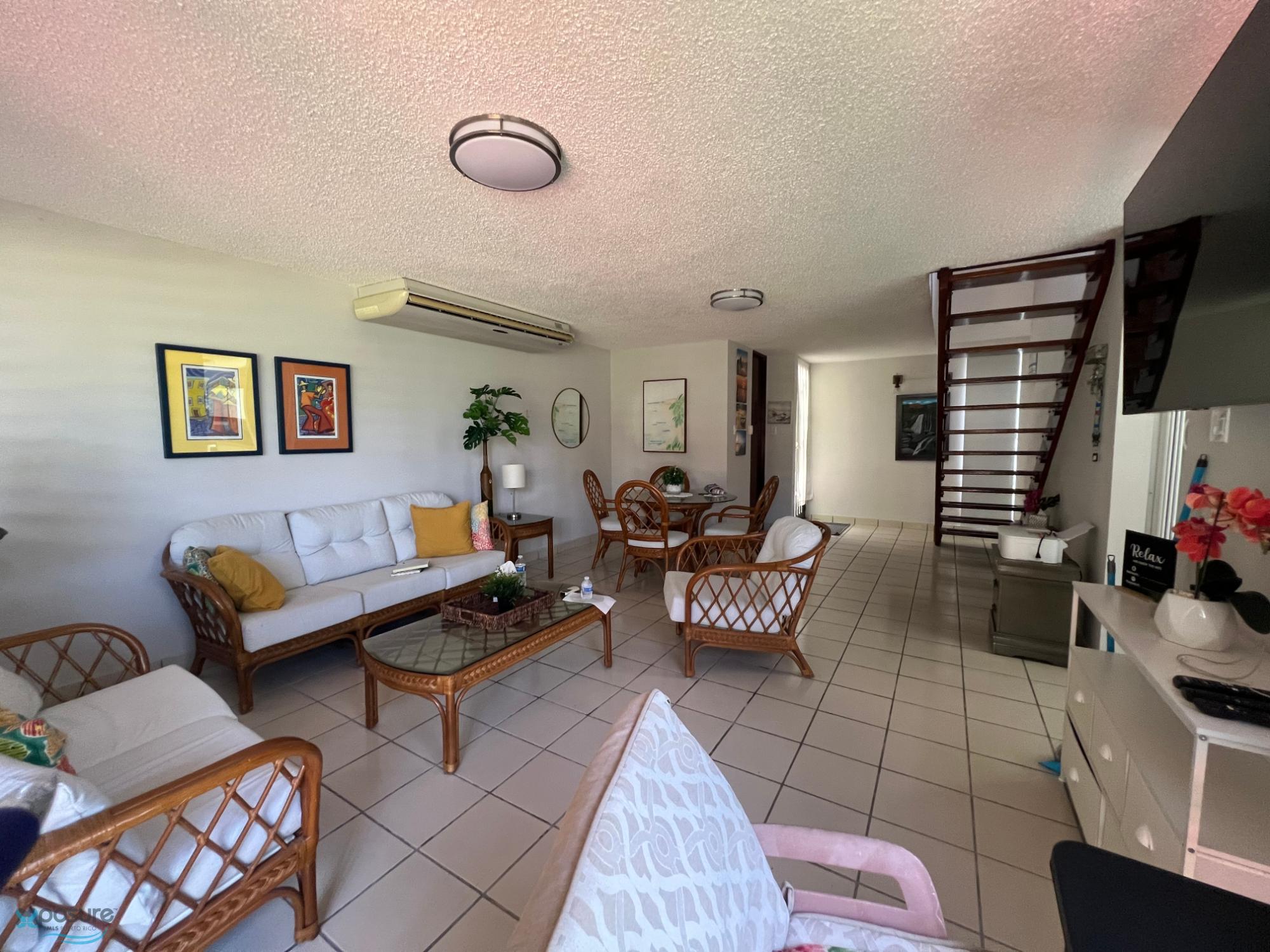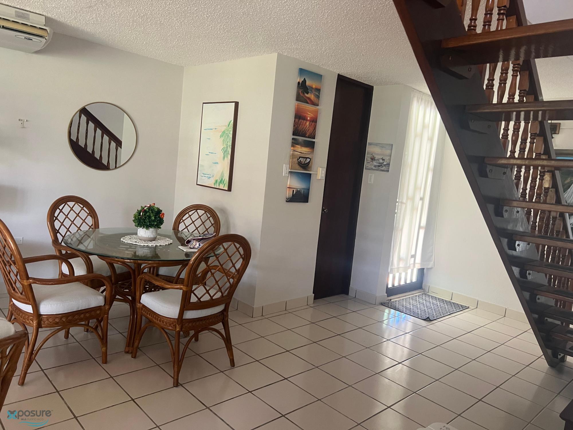 EXPOSURE MLS ID 62134 787 688-8800 Casa de Playa townhouse villa de dos niveles. primer nivel espacio abierto con sala-comedor, 1/2 baño, cocina con ventana entrando luz natural mirando hacia el patio y tiene una puerta con salida a la marquesina. en la sala se encuentra la salida hacia la terraza. El segunda nivel cuenta con dos dormitorios y un baño con puerta hacia el master y pasillo. la segunda habitacion con amplio closet y doble ventana de seguridad y con tormenteras. existe una puerta en el segundo nivel que da acceso hacia el techo de la vivienda y puede colocar pasamos en esta area y aprecia la vista. 787 688 8800 La calle barbados es una atractiva ya que se encuentra en el punto mas cercano al porton que conecta para la playa a un minuto de distancia y tambien se encuentra el estacionamiento para visitantes. las amenidades también estan cercanas a la propiedad puede ir caminando. La propiedad tiene potencial para anadir un habitacion adicional. tambien el complejo permite renta a corto plazo. observe nombre del listing broker para su información..