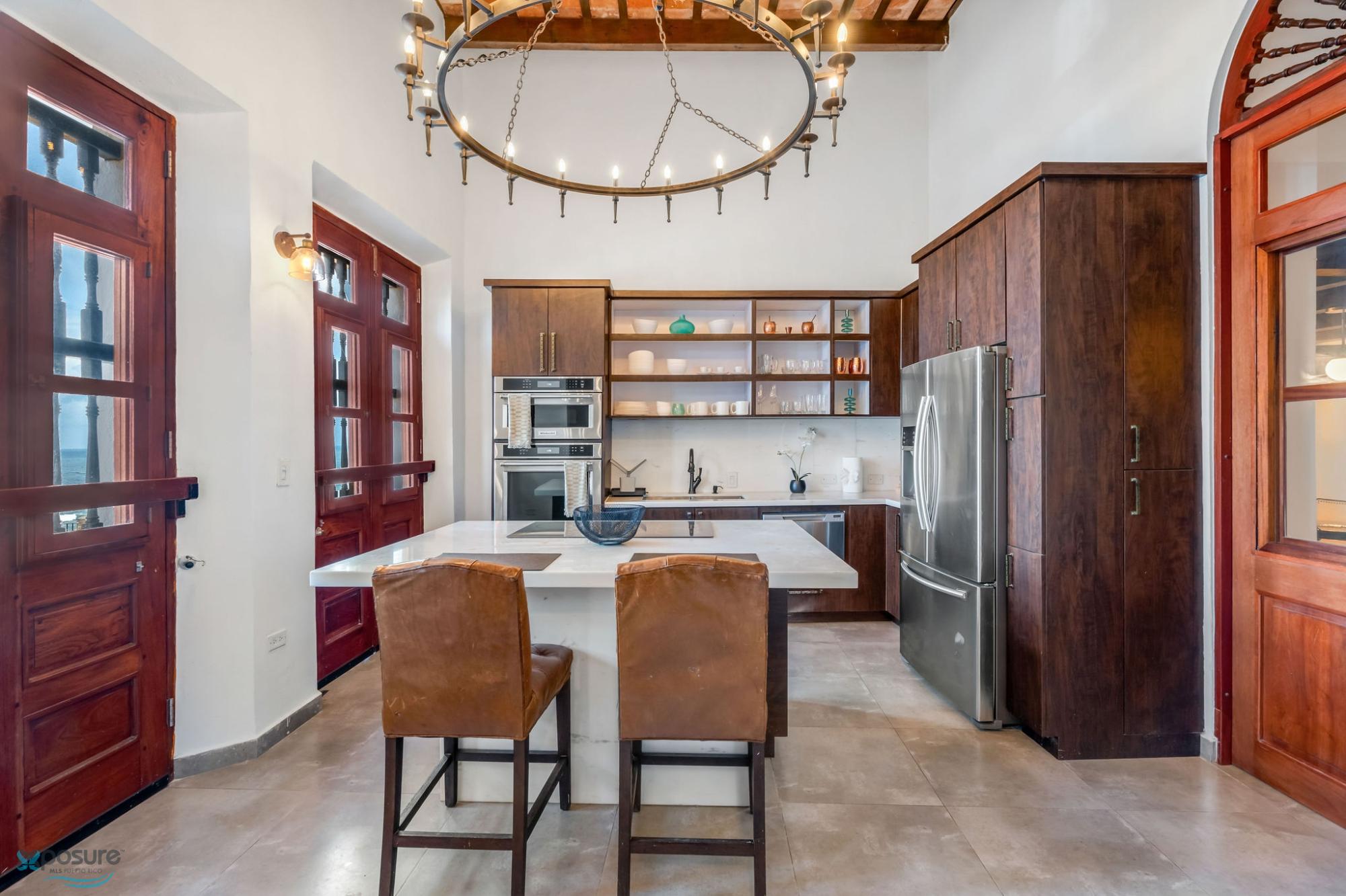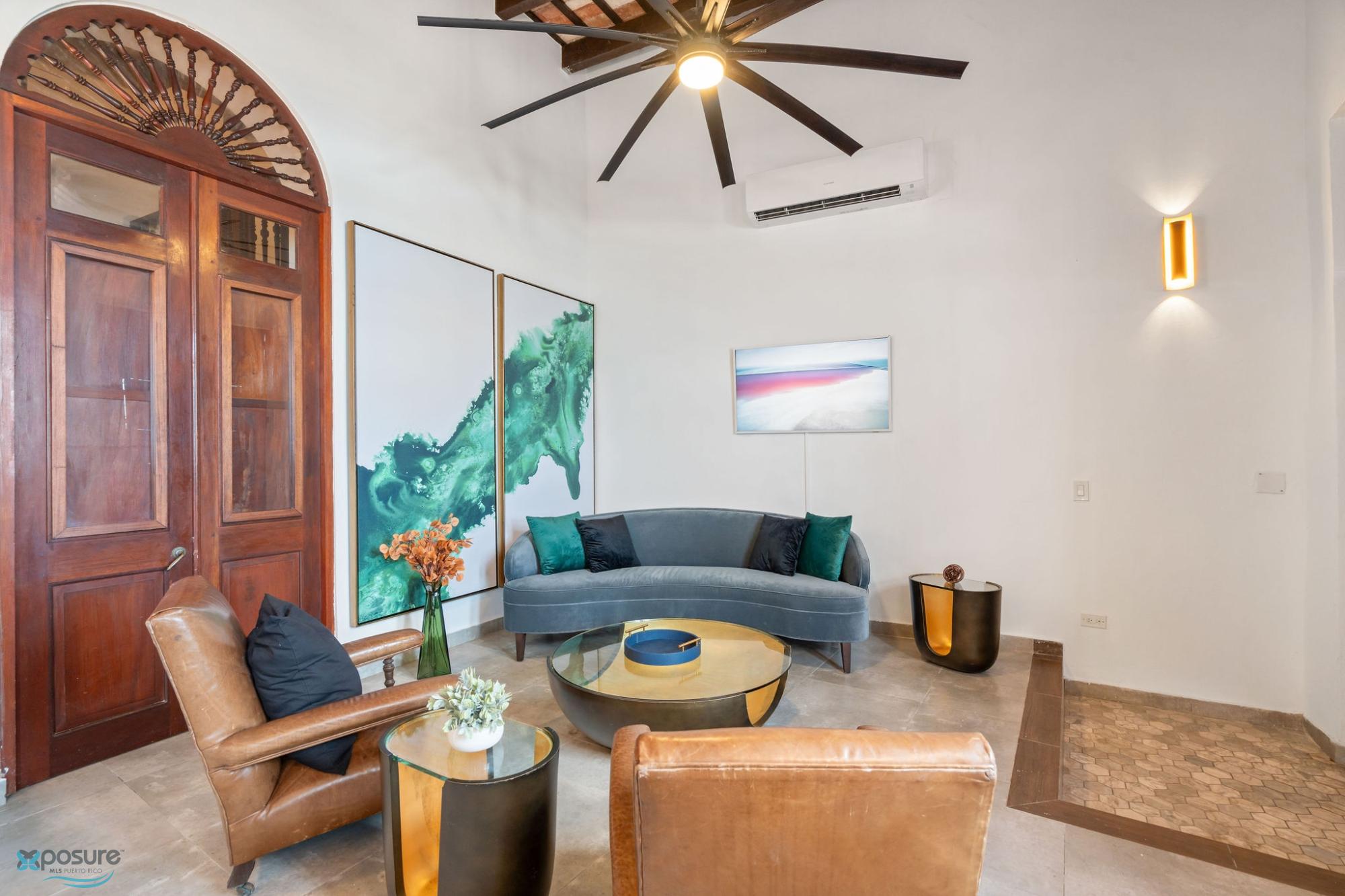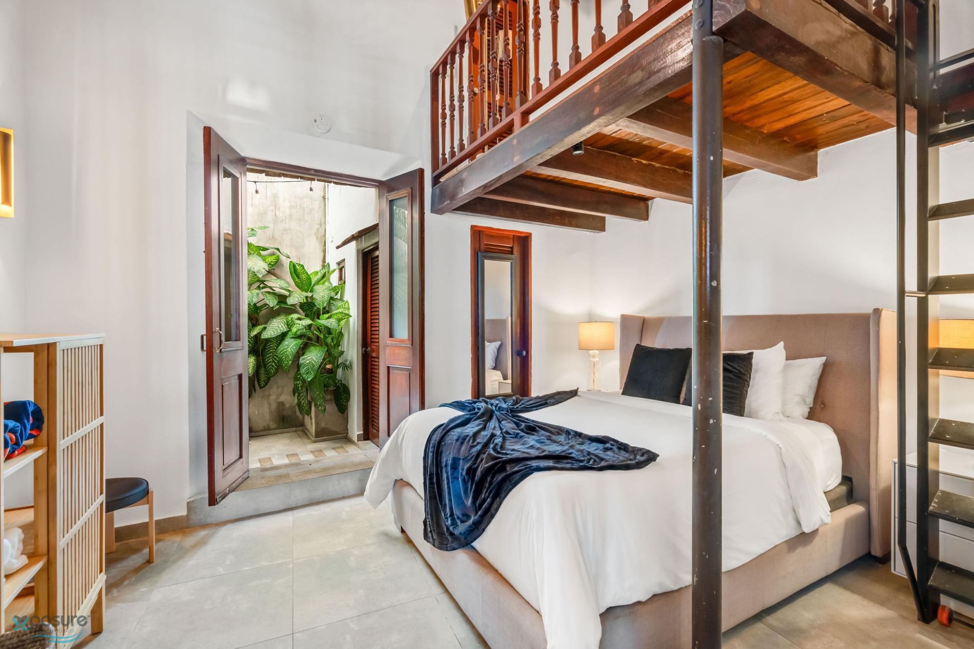 Alójese en la histórica muralla del Viejo San Juan y disfrute de la combinación perfecta de ambiente atemporal y comodidad moderna. Esta exclusiva villa se encuentra a pocos pasos de monumentos históricos, vibrantes plazas y hermosas playas. Un pintoresco paseo marítimo pasa junto a su puerta, que conduce a la playa El Escambrón y al Condado. Características destacadas: Villa de dos niveles con vista al mar, cómoda sala de estar, cocina abierta, comedor y espacio de trabajo, dormitorio con cama queen y baño privado en la planta baja, loft con dos camas individuales entre los dos pisos principales, suite principal con cama king y vestidor, ducha con vista al mar y terraza en el segundo piso. La terraza incluye asientos al aire libre y bañera de agua fría, cocina equipada, dos dormitorios (una cama queen y una king), dos baños, loft, patio interior, escalera al aire libre, terraza con vista al mar y lavadora/secadora..
