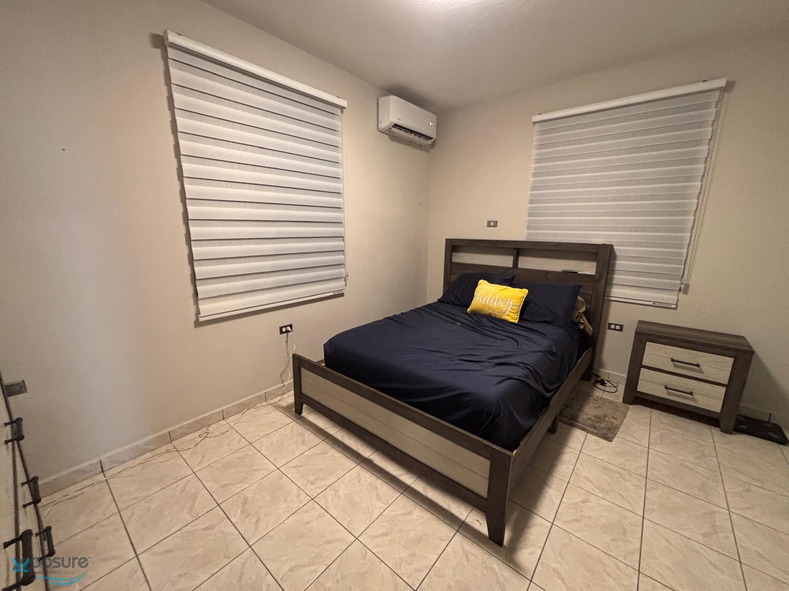 Propiedad de 3 cuartos y 2 banos ubicada en el barrio Piedras Blancas en Aguada, en la PR-416 Km 1.9 Int. en la entrada a mano derecha justo antes del puente del Rio Culebra. La calle es sin salida, lo que provee cierto tipo de seguridad para el inquilino. La propiedad esta compuesta de 3 cuartos y 2 banos con 1,217 pies cuadrados de living area con carport para un carro, porch, área de laundry exterior, una terraza con un gazebo y banquitos, sistema de camaras de seguridad, sistema fotovoltaico con capacidad de 6kW con bateria de 12kW. Esta propiedad tiene la opcion de rentarse completamente amueblada por $1,750 o sin amueblar por $1,400..