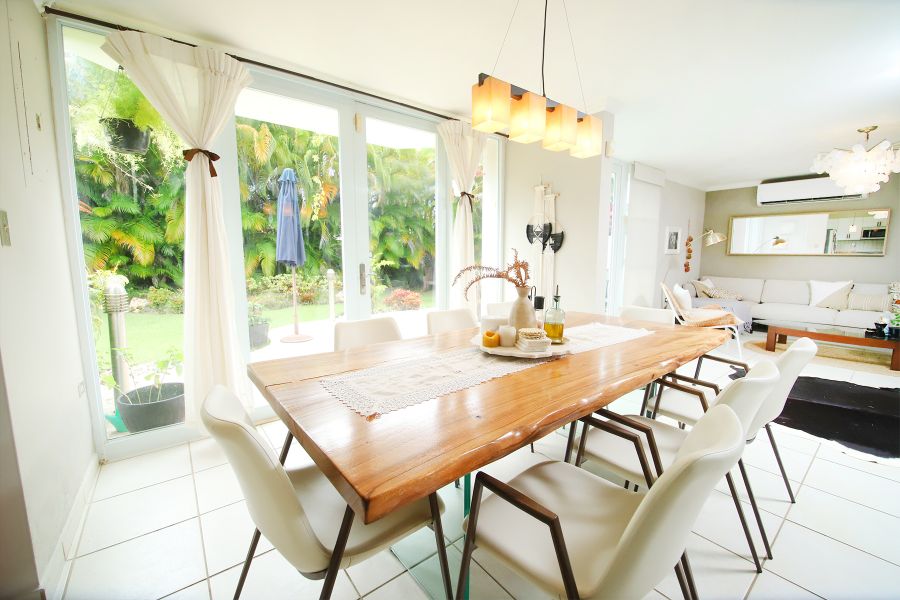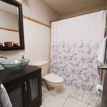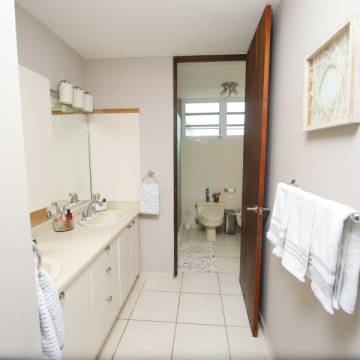 3 cuartos, 2.5 baños, Sala, cocina, comedor, laundry, Garage para 2 autos, patio de aproximadamente 504 m², Doble control de acceso para mayor seguridad. Cocina totalmente equipada, estufa, horno de pared,"Air fryer", filtro de agua, cafetera con molinillo, microondas y nevera, herramientas, equipo de jardinería, aire acondicionado en todas las habitaciones y en sala. Para el patio: linternas/antorchas repelentes de mosquitos, lámparas de noche, internet de fibra óptica de alta velocidad.