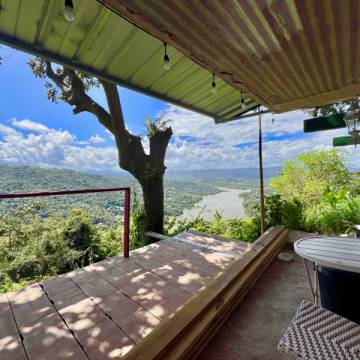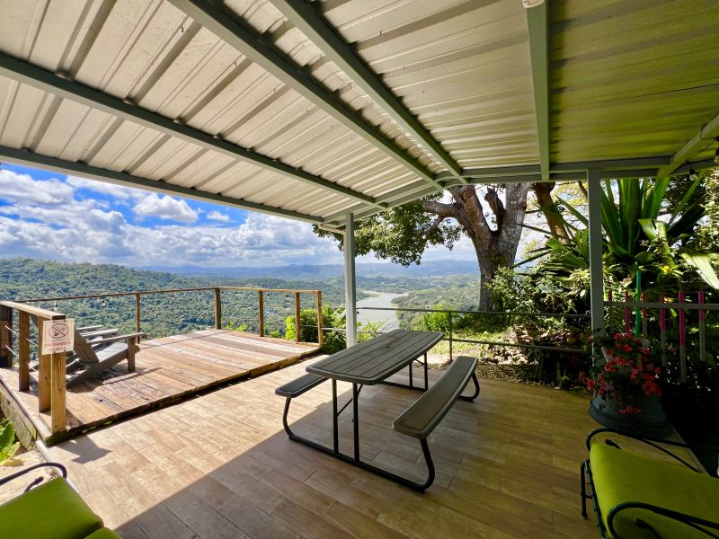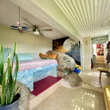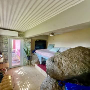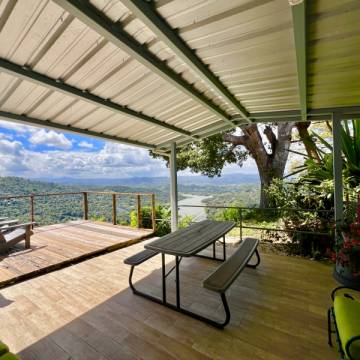 Esta propiedad, actualmente operando como Airbnb, está ubicada en un entorno natural privilegiado, con impresionantes vistas al mar y a las montañas, ofreciendo una experiencia única para sus huéspedes.