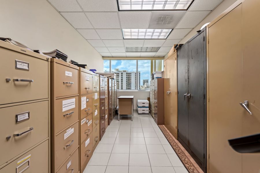 · Five private offices, a filing room convertible into an additional office, and open work areas