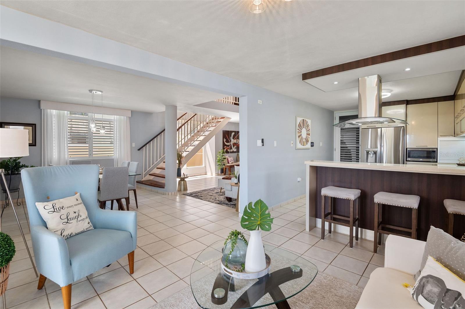 Simply SPECTACULAR. This residence has absolutely everything you are looking for for your family. Located in the Miradero residential community, just 3 minutes from the expressway and Palmas del Mar. In addition, this community offers 24/7 security and recreational amenities, including a swimming pool, gym, basketball court, tennis court, and an activity room. This residence has been fully remodeled and equipped, offering you the convenience of 1,875 sq. ft. distributed across 4 bedrooms, 2.5 bathrooms, and a concrete terrace at the rear of the property. Beautifully remodeled open-concept kitchen with quartz countertops and a strategically designed cabinet layout to maximize storage space. Spacious living, dining, and foyer areas with new, modern windows. All bathrooms have been remodeled and tastefully decorated. For your convenience, the laundry room is located on the second level. The bedrooms are generously sized, two of which feature private balconies. The large primary bedroom includes a separate vanity area and a closet designed to optimize space and organization.The property features high ceilings, enhancing natural light and creating a sense of openness throughout the home. It is being sold partially furnished and equipped. Two-car garage with side-by-side parking, plus an additional storage closet in the garage area.