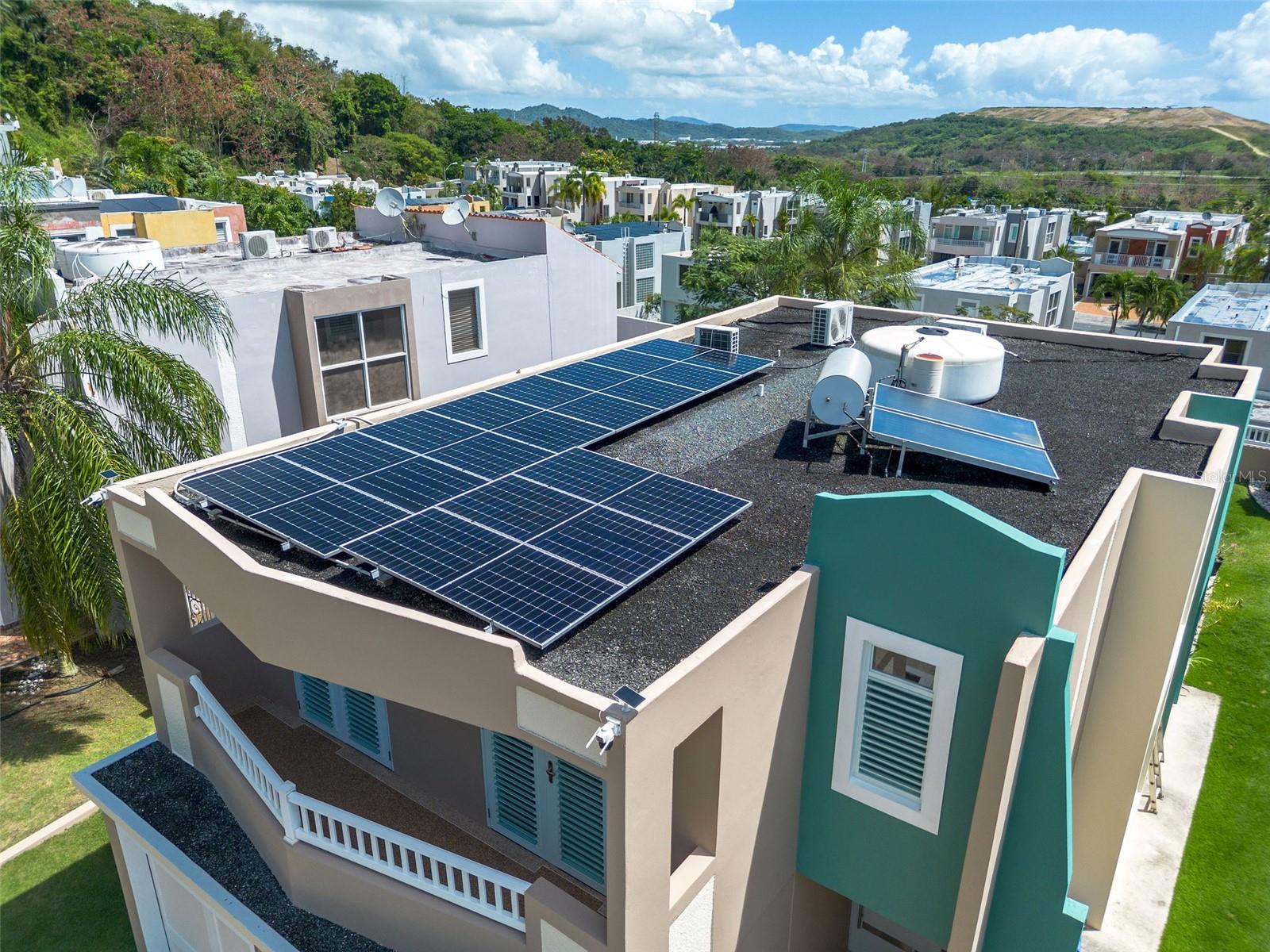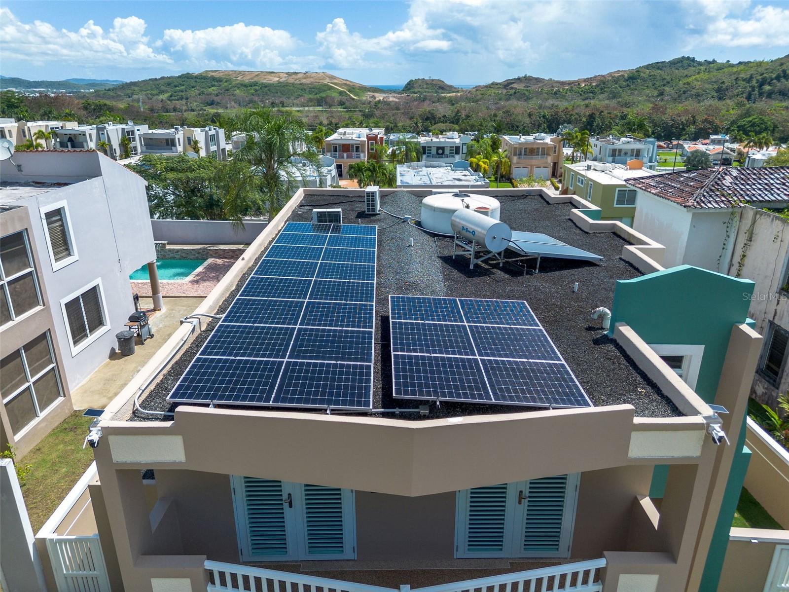 This property is equipped with a fully paid solar panel system, ready to be transferred to the new owner, with a 30-year warranty. The system includes 11 panels and 4 Emphase battery modules, with a 15-year battery warranty. Additionally, it includes a solar water heater and a 620-gallon cistern. The residence is in excellent condition and features a urethane-treated roof. This property is move-in ready, accessible, and an excellent opportunity for you and your family to enjoy. Don’t miss the chance to own this elegant and modern residence.