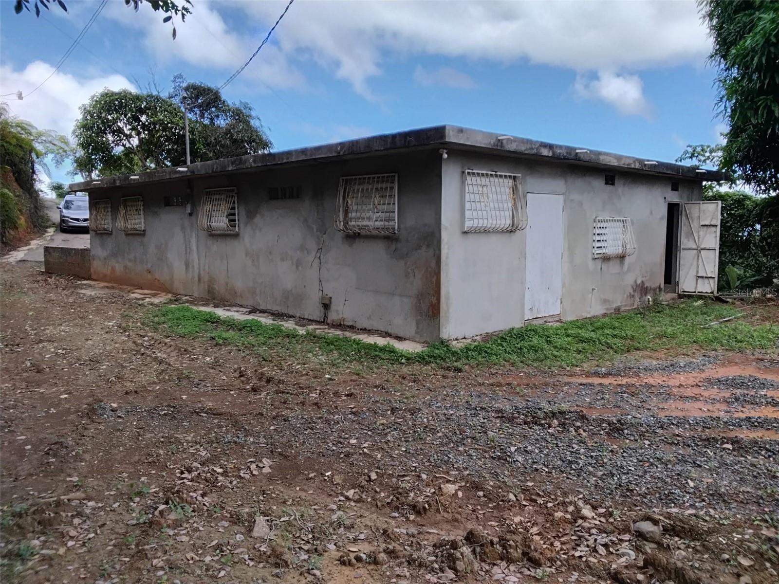 A 3-cuerdas lot (11,791.17 sq.mt., with a concrete structure featuring two bedrooms, one completed bathroom and another one partially started, living room, dining room, and kitchen… unfinished. The structure has not been painted as it is not completed; it has window bars and a sheet metal door at the back.