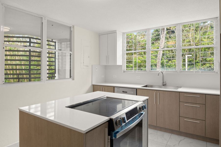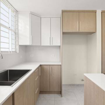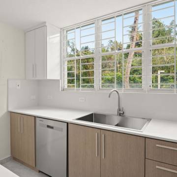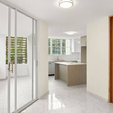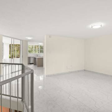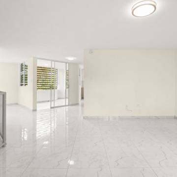 Espacioso apartamento completamente remodelado de dos niveles, con abundante luz natural en todas sus áreas y un amplio balcón. Cuenta con 3 habitaciones, 2.5 baños y 2 estacionamientos.