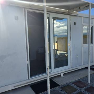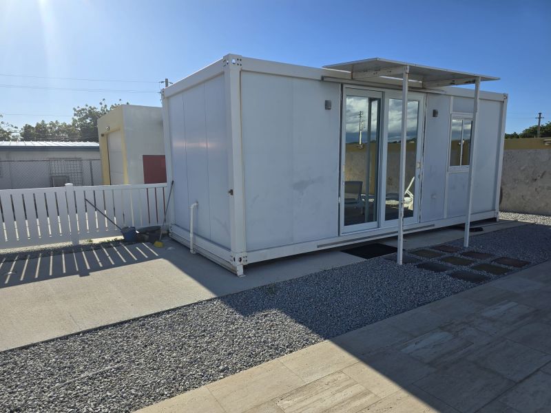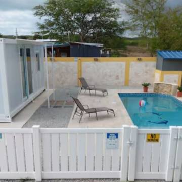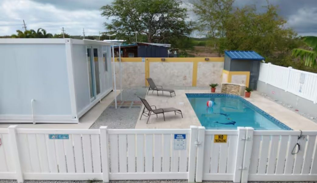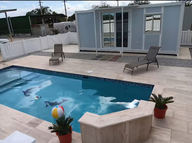 - Piscina privada con área de lounge y unidad de huéspedes estilo contenedor